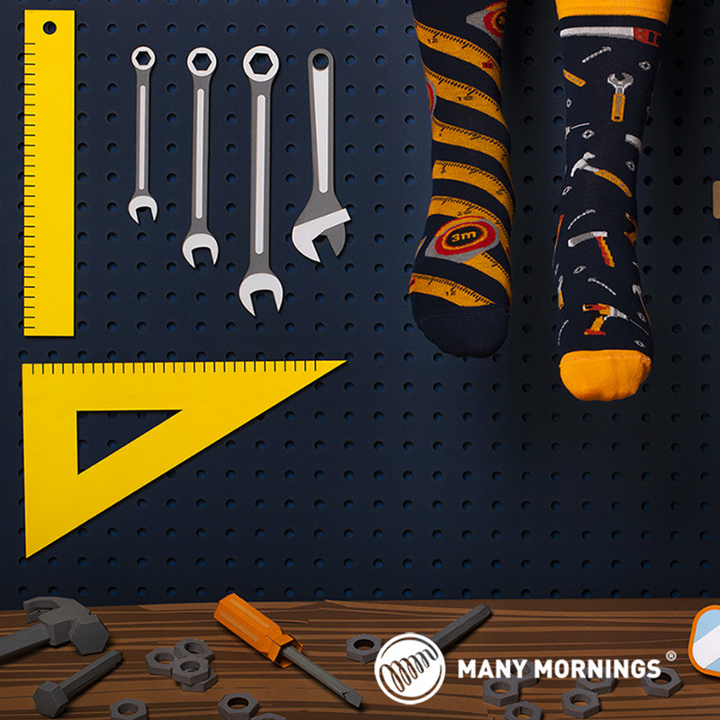 Avec Many Mornings « The Handyman », vous vous offrez la paire de chaussettes à tous ceux qui aiment le bricolage ! Scie, marteau, clef à molette, perceuse, et mètre pour mesurer, tout y est pour le parfait bricoleur du dimanche. Des chaussettes qui vont captiver l’attention dans tous les magasins brico, et faire des envieux. On offre cette paire de chaussettes à ceux qu’on aime à noël, à la fête des pères et même au saint valentin. Enfin pour cette dernière, c’est un signal !