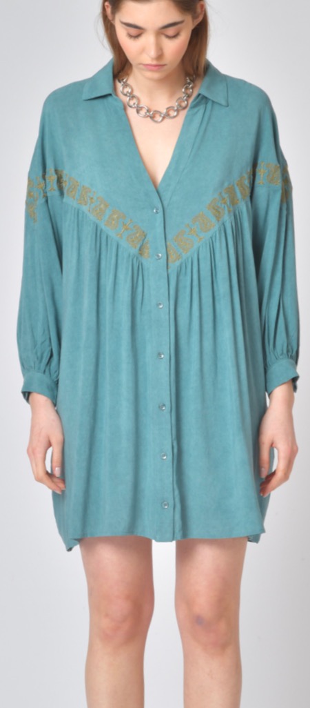 Blouse en coton à motif floral, coupe ample, manches longues, décolleté en v orné d’un plissé et d’un col discret, douce et fraiche. Le modèle taille grand.
