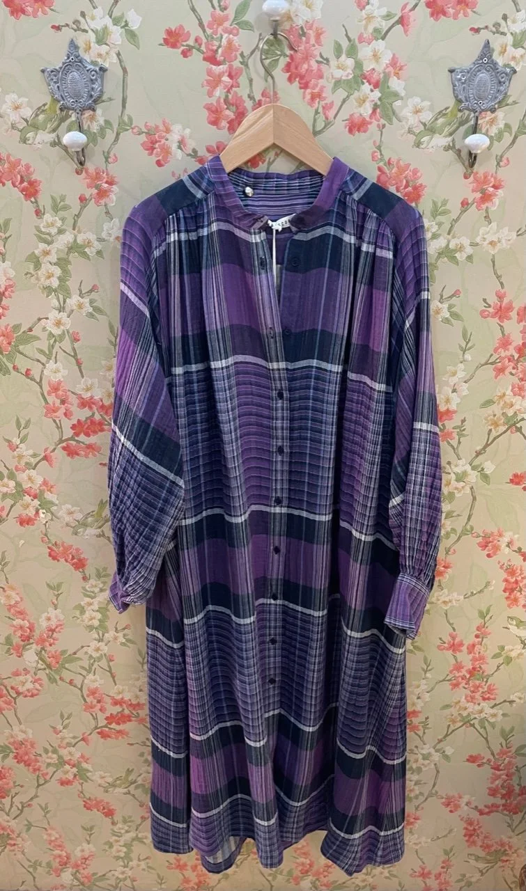 Robe longue en coton, boutonnée devant, manches longues, emmanchure large et poignets resserrés, douce et fluide. Le modèle taille grand.