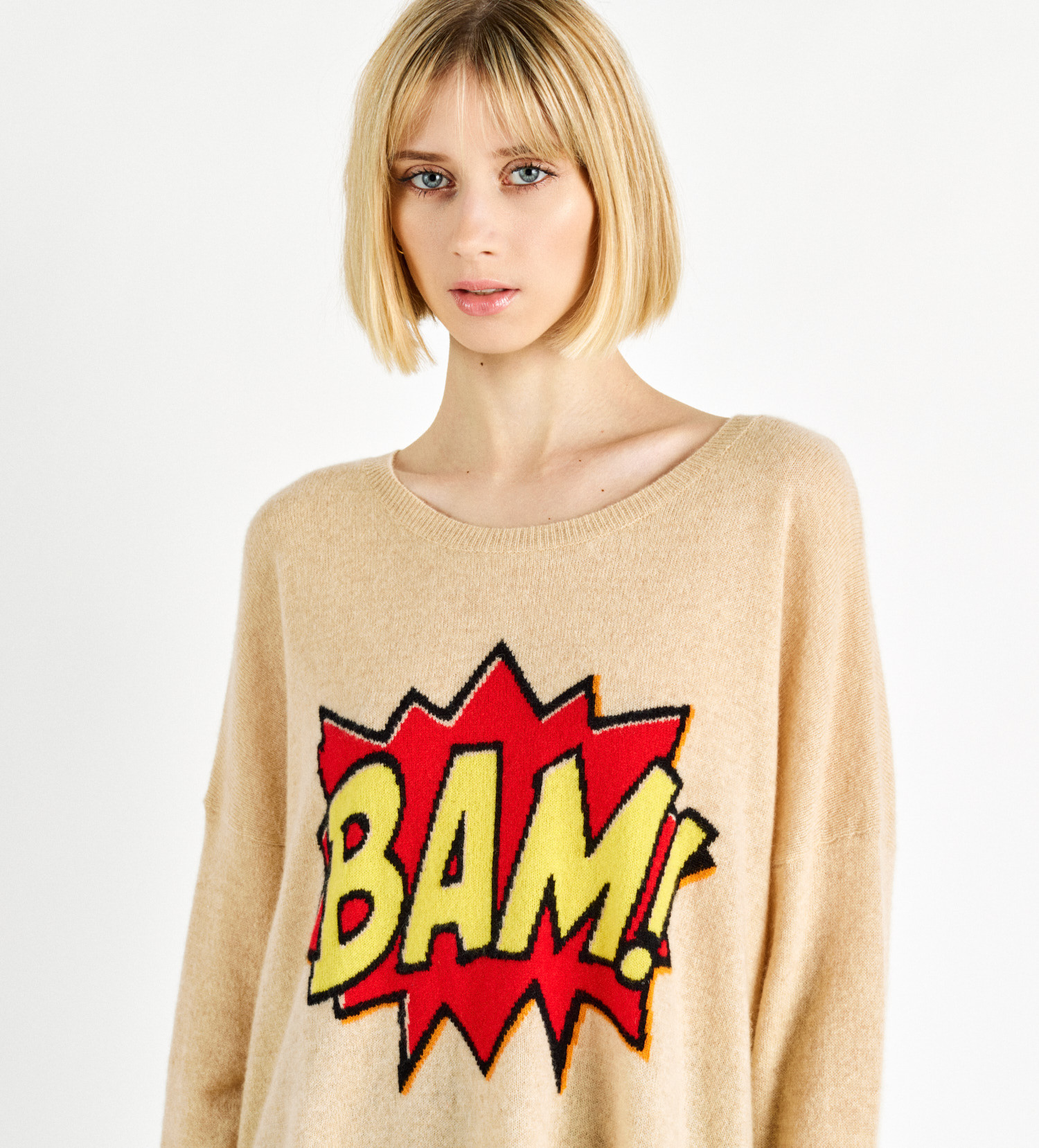 Pull col rond avec mailles apparentes. Un très joli coloris doux au teint qui mariera tous vos pantalons.