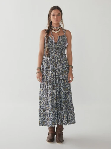 Robe chemise bi-matière corsage et manches en imprimé liberty.