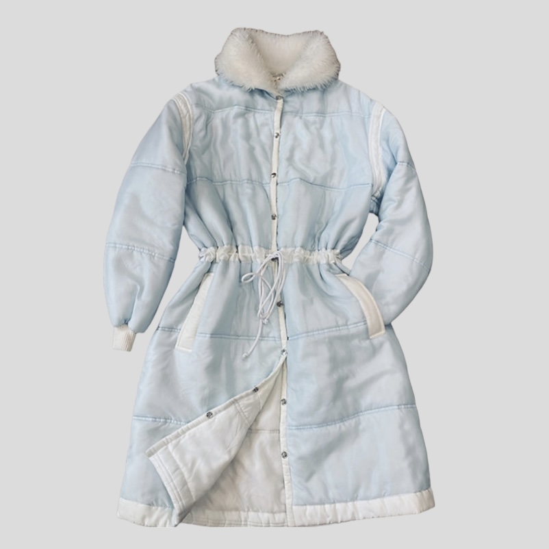 – Surpiqûre simple à l’encolure et autour de la capuche