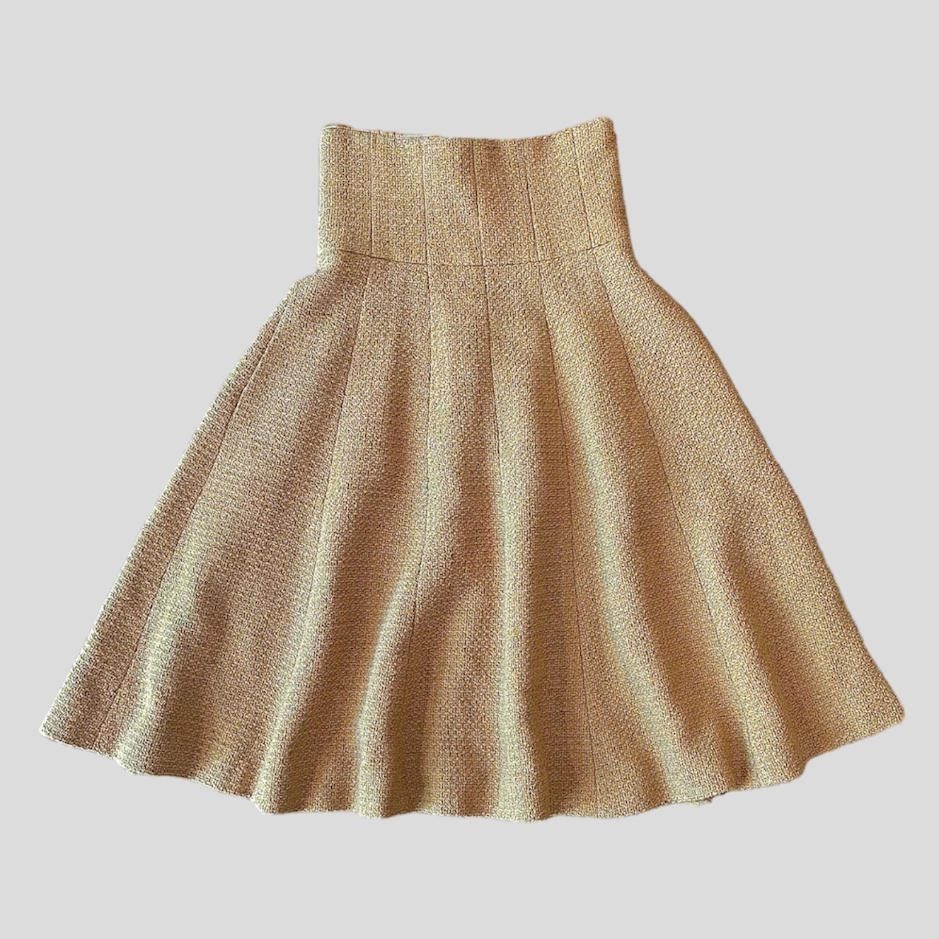 Chanel High Waist Skirt in wool with silk lining from the 2014 "Brasserie" fashion show. Zip and hook closure at the back. Possibility to close it also with a silk tie.