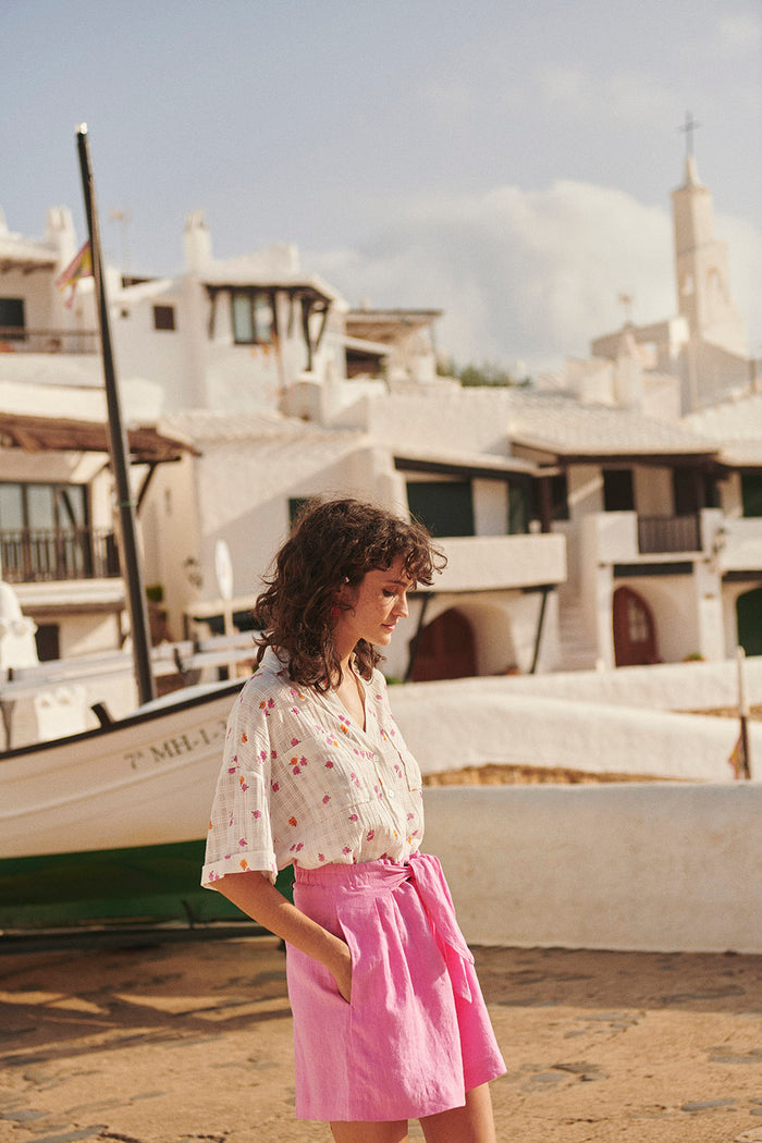 Cet été, choisissez le confort de ce short en lin à l'élégance décontractée. Fluide et facile à associer, de larges pans à nouer structurent ce modèle à porter avec un t-shirt imprimé pour les vacances.