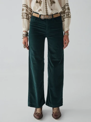 Acceptez le froid avec ce pantalon en velours côtelé, un incontournable de l'hiver qui a du caractère. La riche teinte émeraude crée un équilibre entre audace et raffinement.