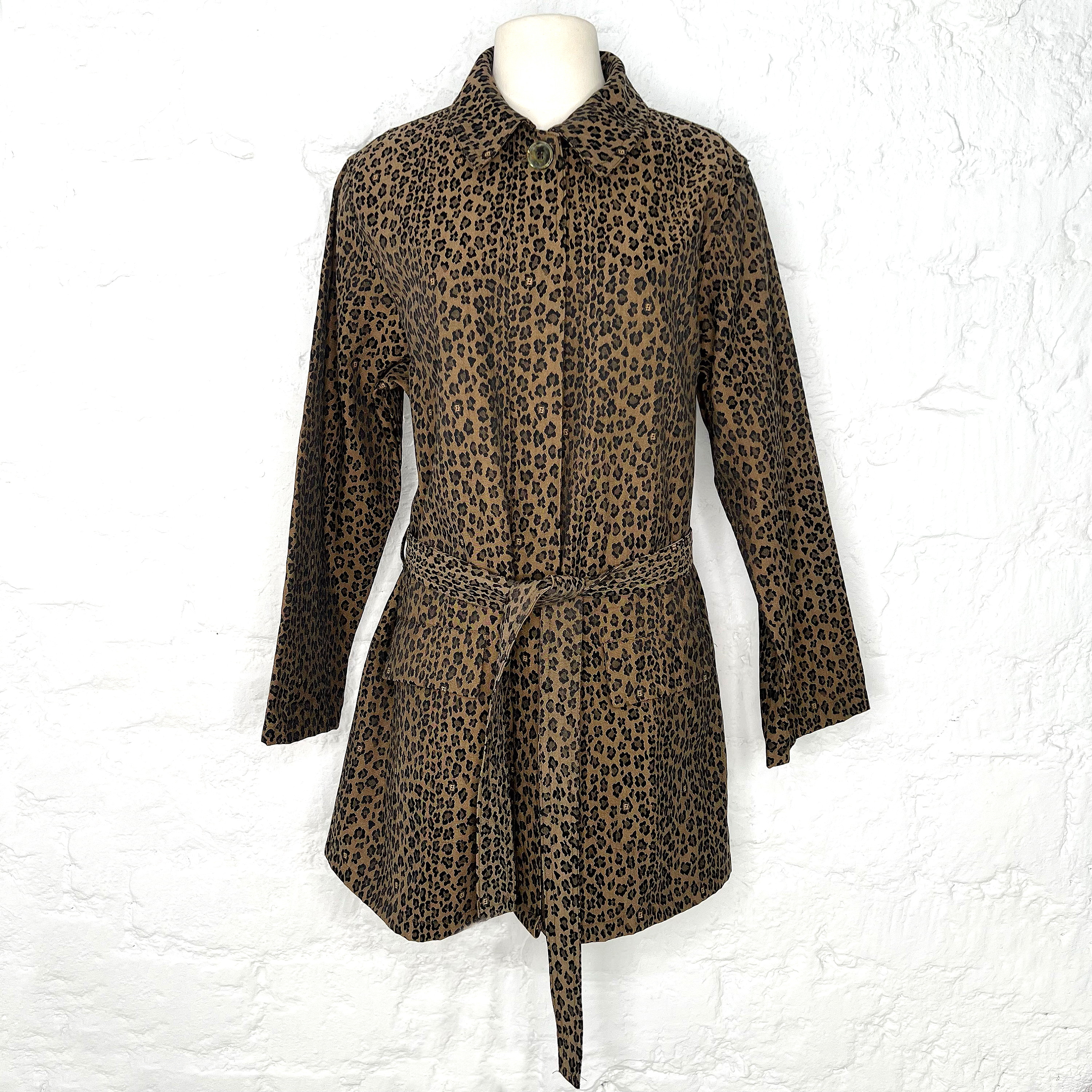 Long leopard printed trench-coat
