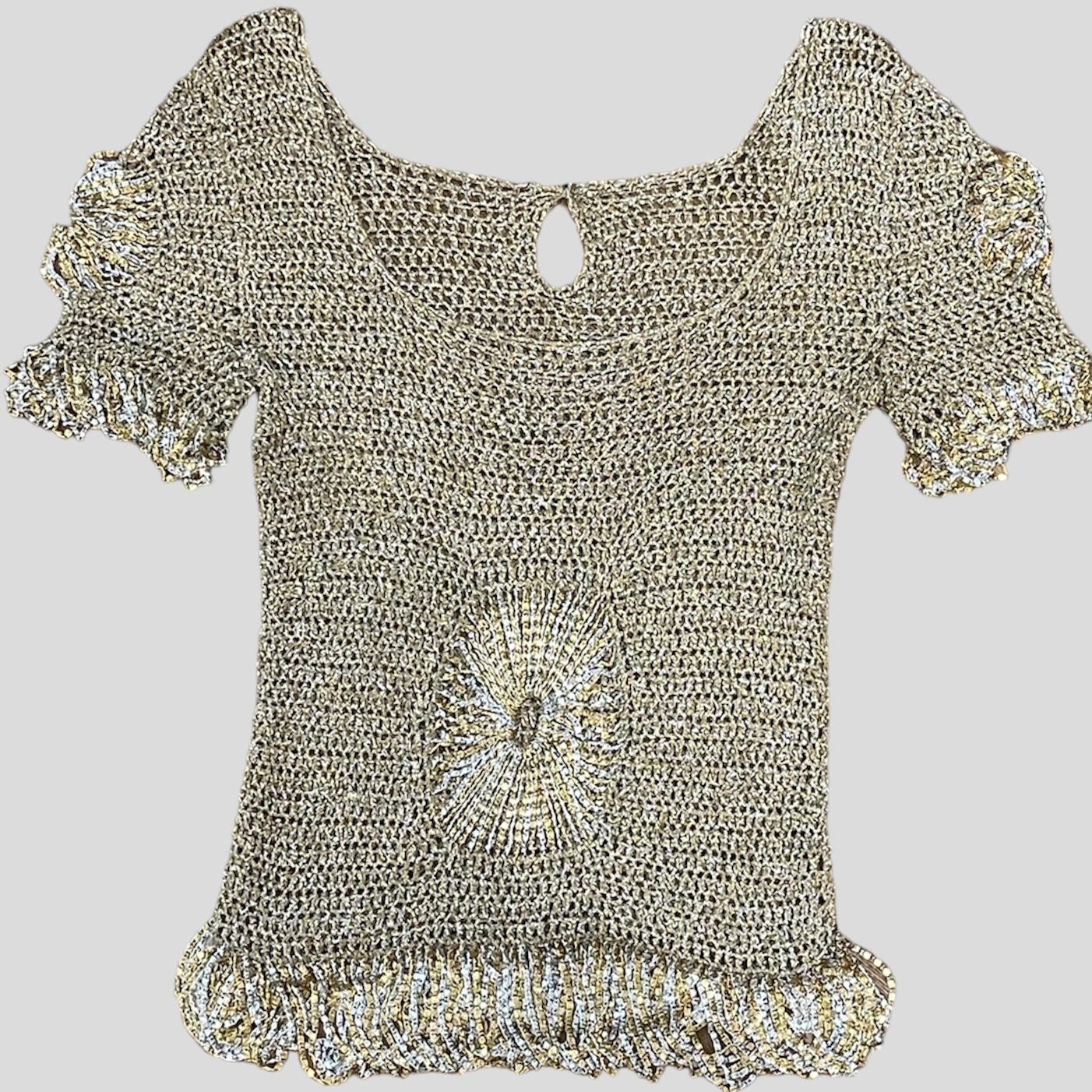 Azzaro knitted top with chain details on the front and on the sleeves.