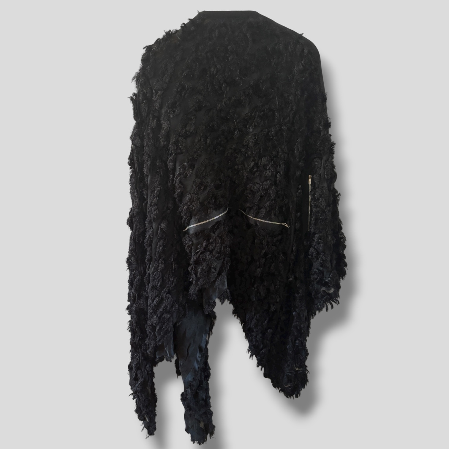 Sonia Rykiel Tulle Cape in black. It can be opened on the sides thanks to two zippers. It can also be opened at the front and back with zippers engraved with the logo.