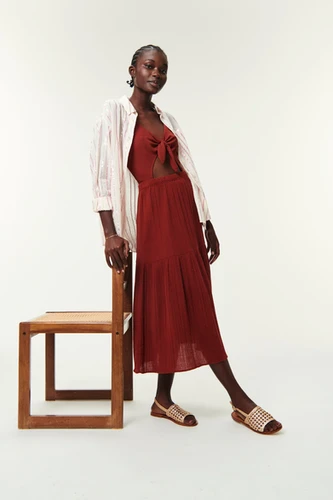 Matière parfaite pour l'été, la jupe longue est déclinée en double gaze de coton pour un look folk. Elastiquée à la taille et légèrement évasée, choisissez un top graphique ou t-shirt pour finaliser le look.