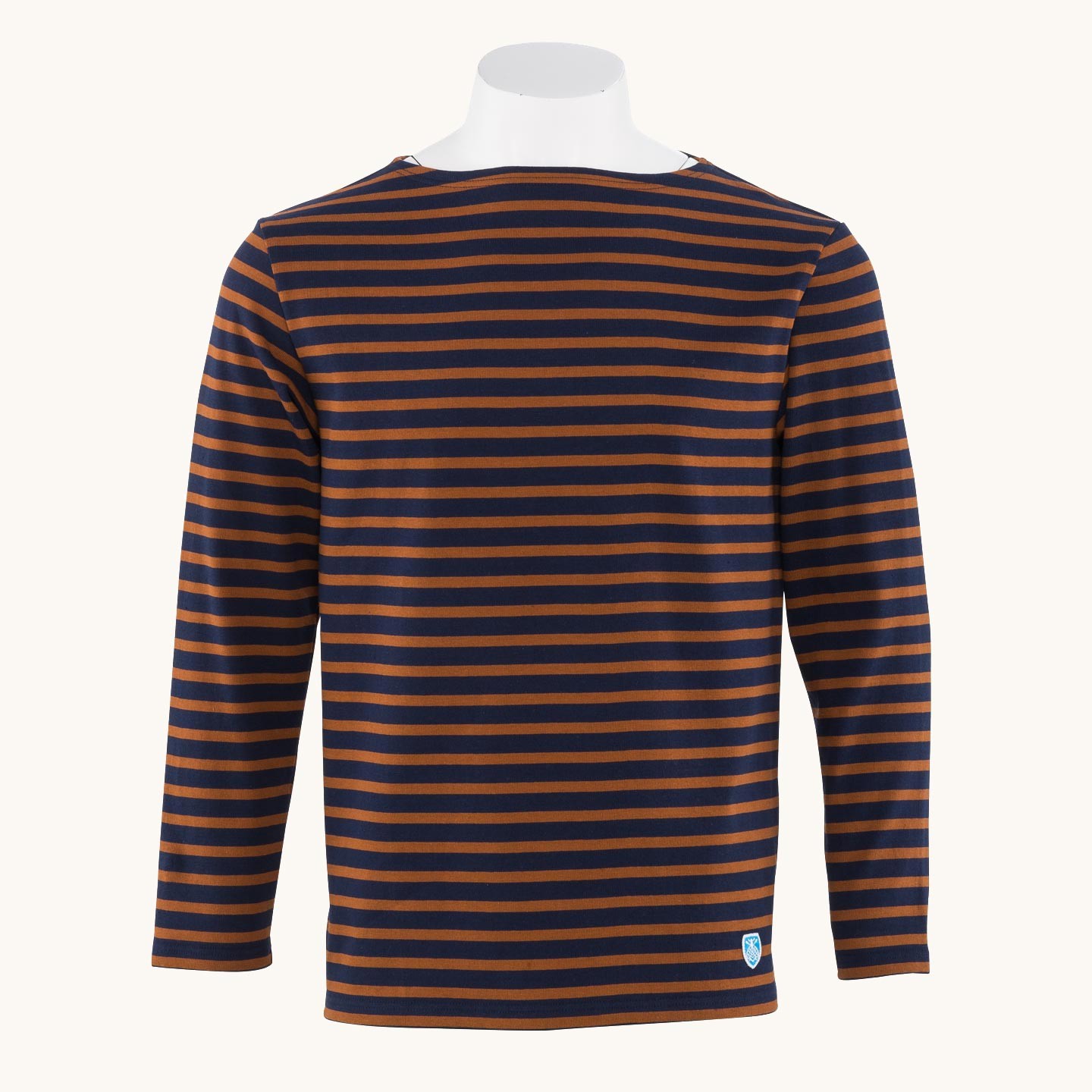 Inspirée de la nature, la marinière noisette reprend à la fois cette couleur que les écureuils aiment bien tout en affichant la couleur marine qui associe la marinière à ses origines liées à la mer.