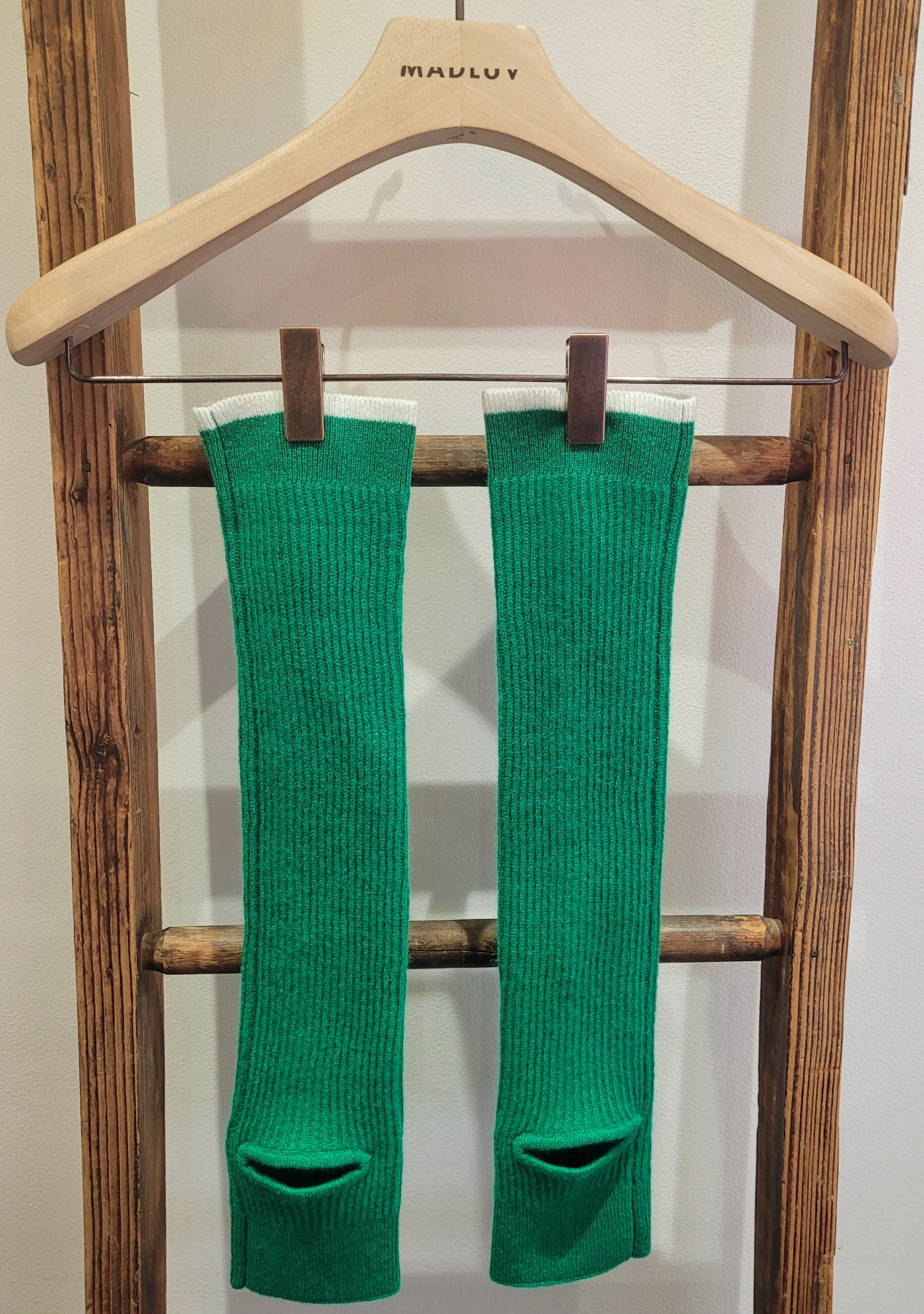 SAMY : Chaussettes100% cachemire aux extrémités ouvertes avec un tricotage à côtes pour une tenue parfaite. - Bord coloré qui ajoute une touche d’audace.100% cachemire- Taille Unique - Coloris : Vert + bord coloré Blanc. Existe aussi en Gris, Camel, Bleu.La livraison est offerte pour la France Métropolitaine !