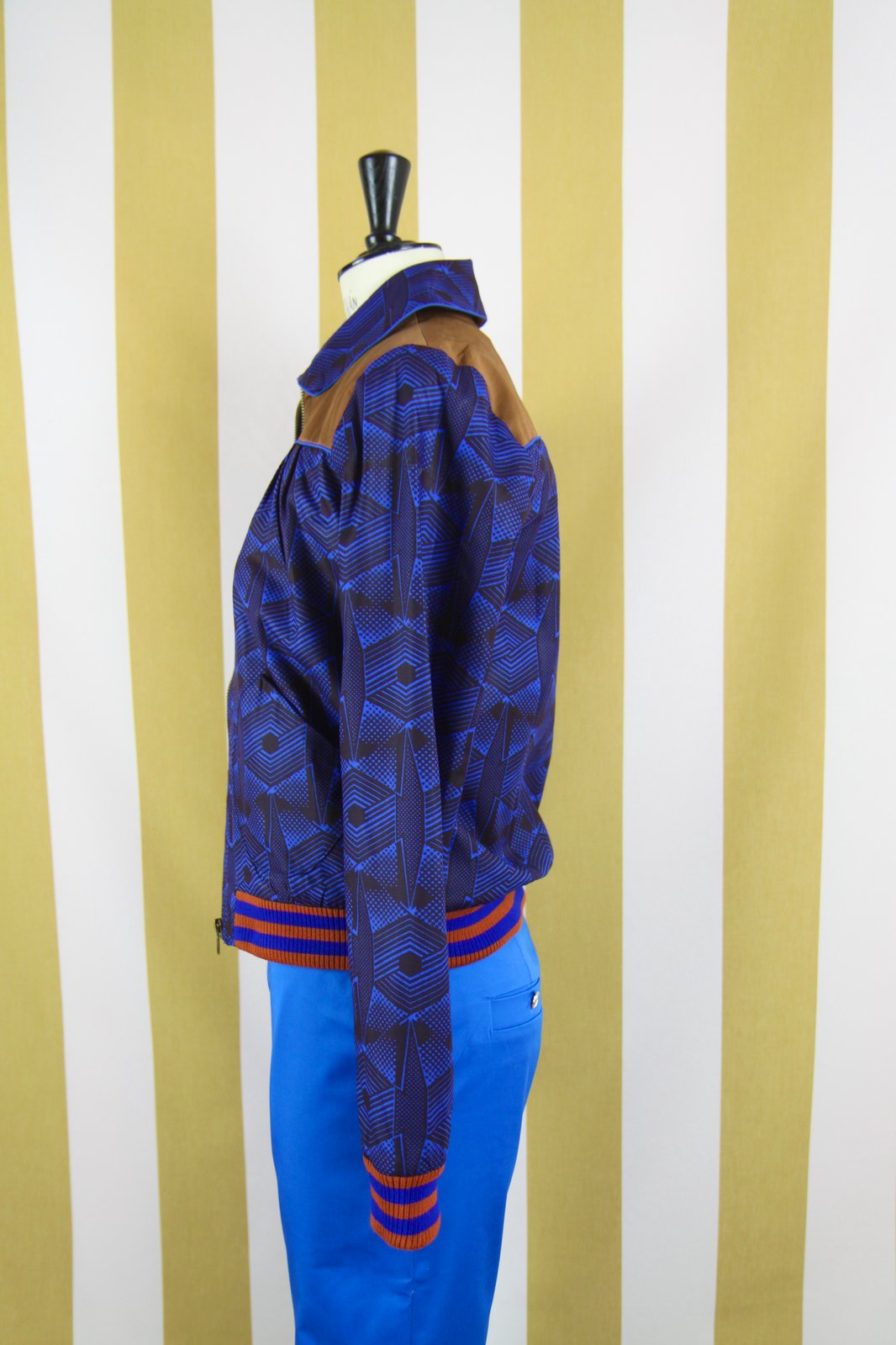 Blouson à la coupe rétro en wax imprimé. Détails soignés de passepoils, bord cote tricoté. Modèle doublé. Prix 248€ -20%= 198€