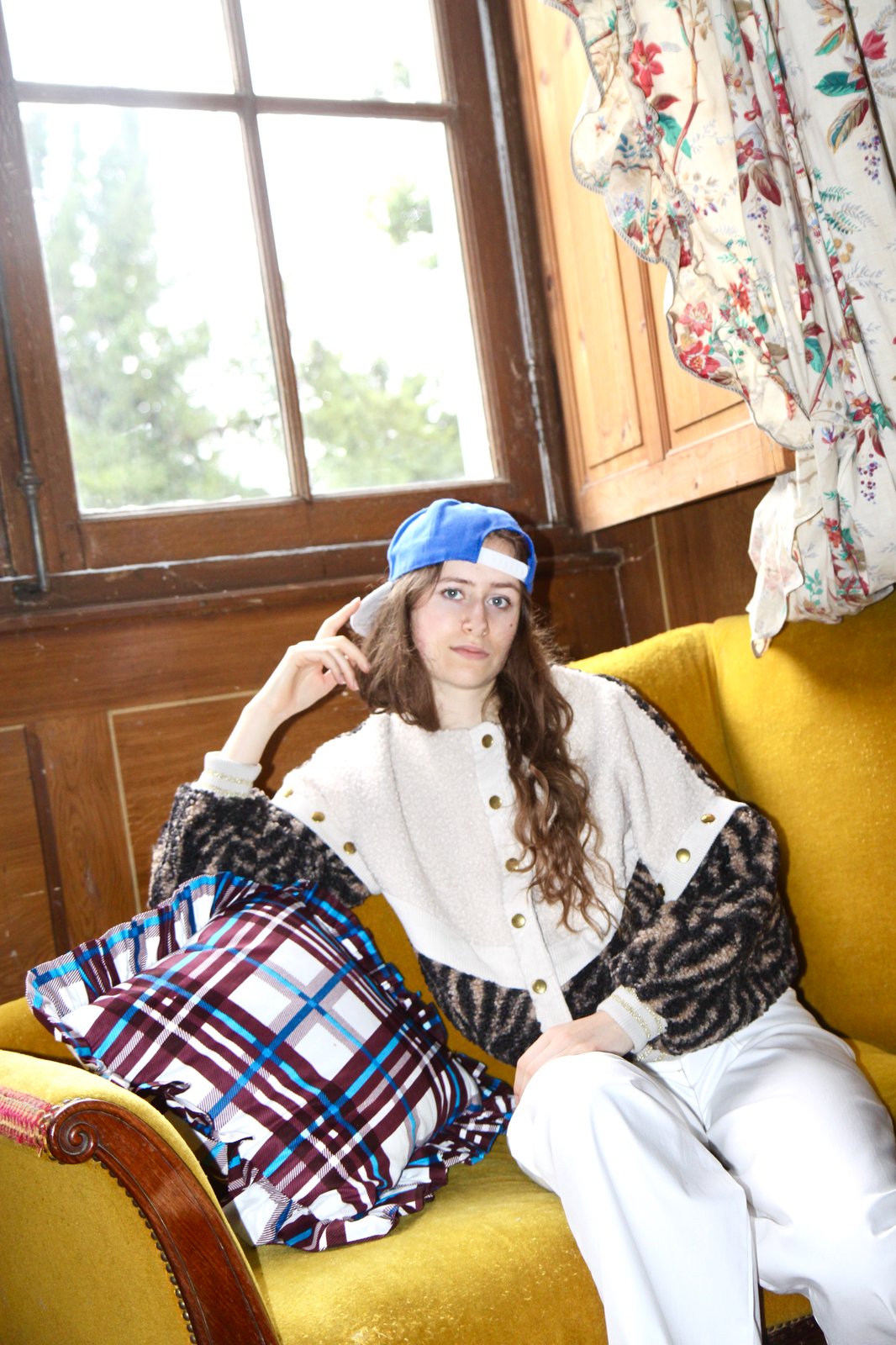 Blouson en Fourrure sherpa unie et imprimée. Finitions velours côtelé pour la patte de boutonnage devant et manches (amovibles ). Poignets et bas de veste en bord-côte. Prix: 275€ -20%= 220€