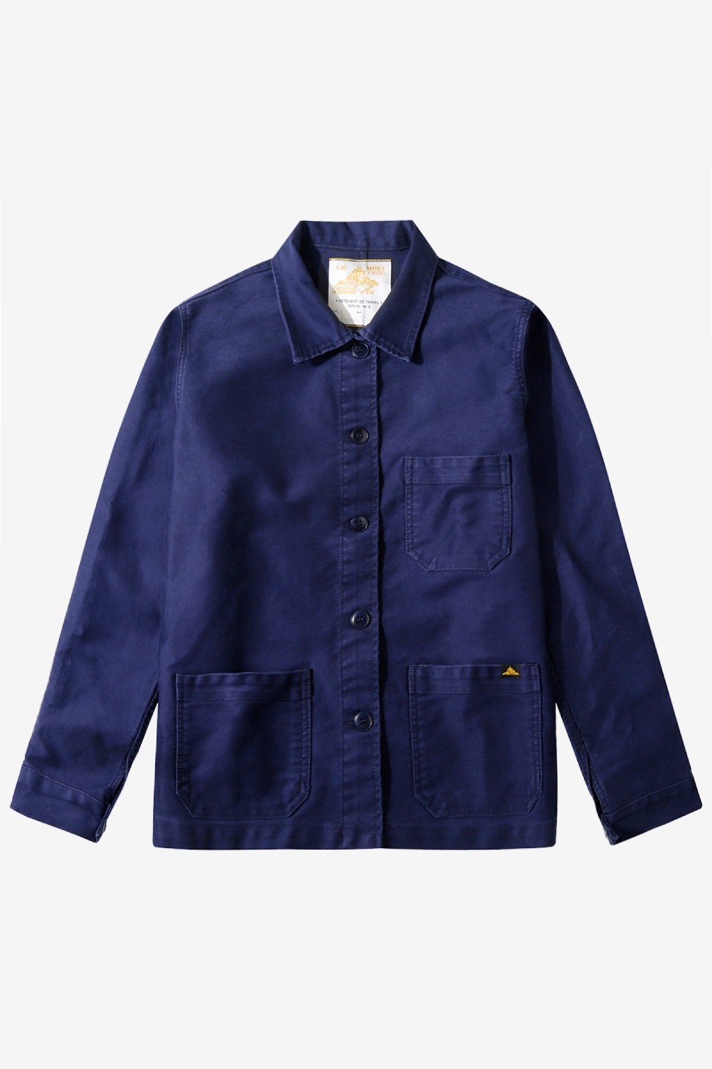 Le Mont Saint Michel’s iconic chore jacket since 1913 in deep blue moleskine (heavy cotton fabric, super durable, ageing well). 3 patch pockets (1 on chest), 1 inner pocket, 5 corozo buttons (vegan).