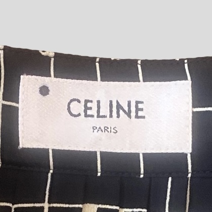Céline long pleated skirt with geometric patterns. Closure on the side with zip and button.