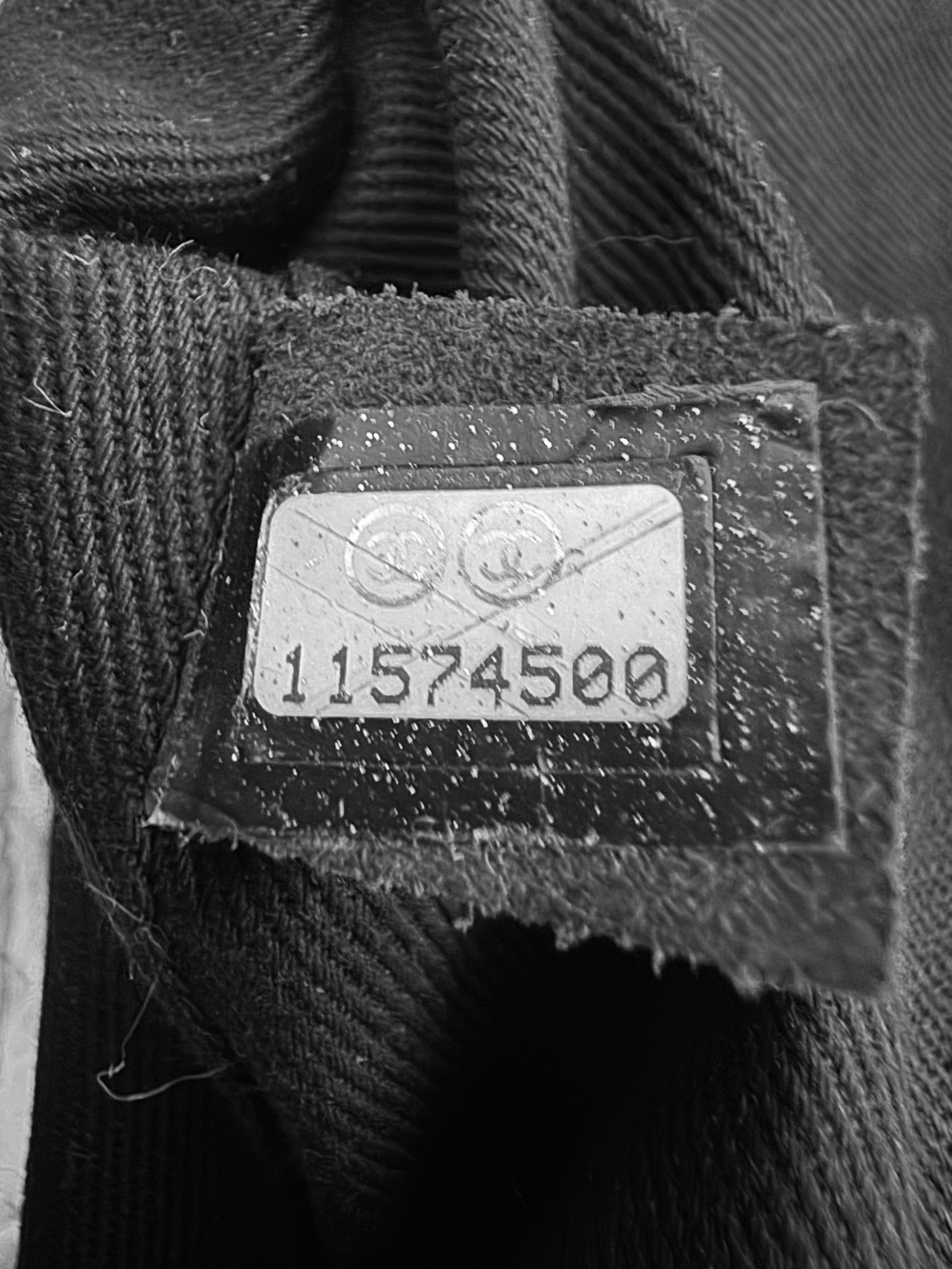 Chanel woven leather flap bag with white flap and silver chain shoulder strap, black platinum leather trim, dark silver hardware, front flap with CC key closure for main compartment and black textile-lined interior divided into two compartments with one zipped pocket. From 2006