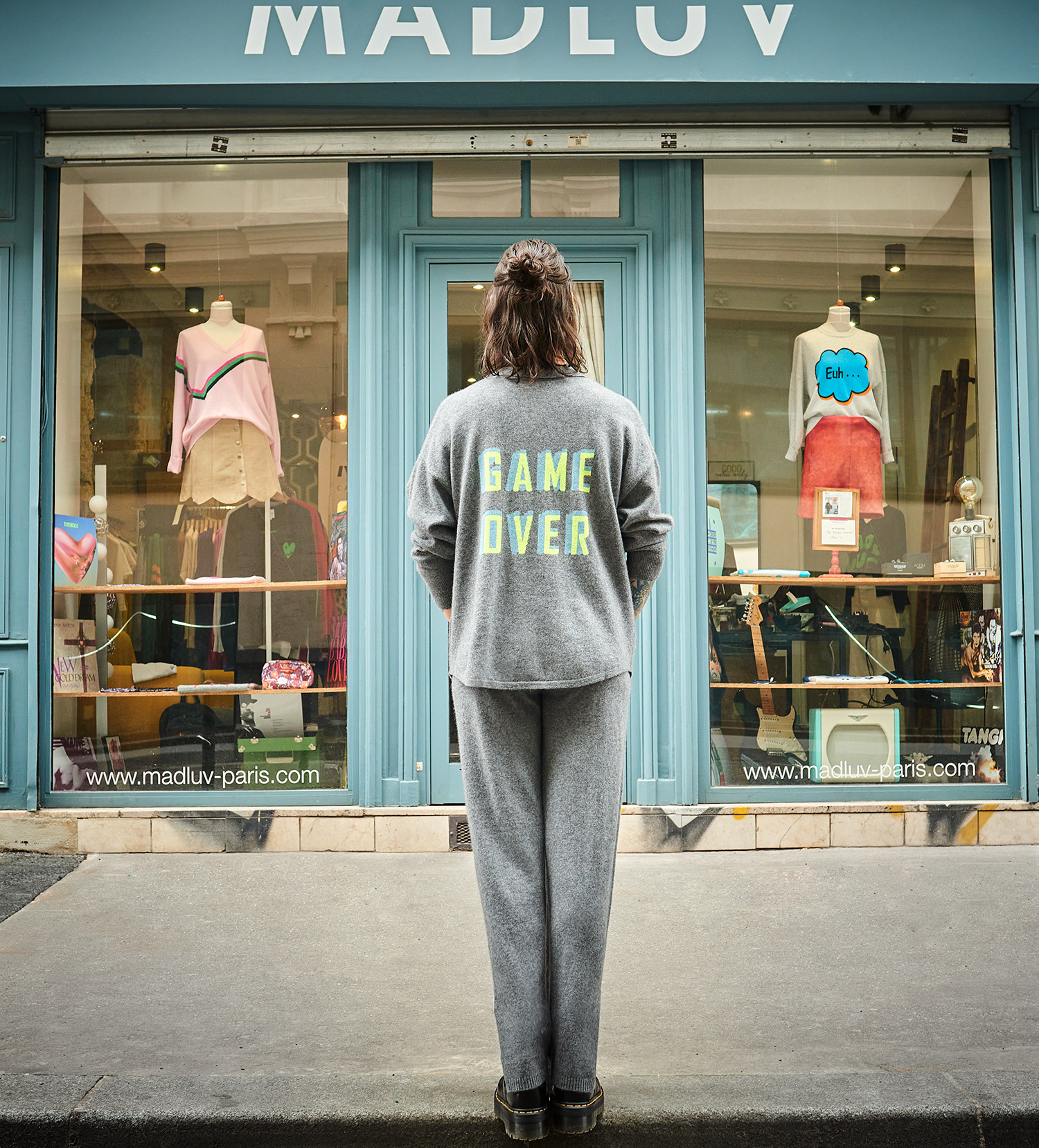 GAMEOVER: Chemise 2 fils en cachemire à col, avec un boutonnage classique.Game Over en Intarsiasur le dos.100% cachemire- Taille Unique – Coloris Gris – Existe aussi en Camel.La livraison est offerte pour la France Métropolitaine !