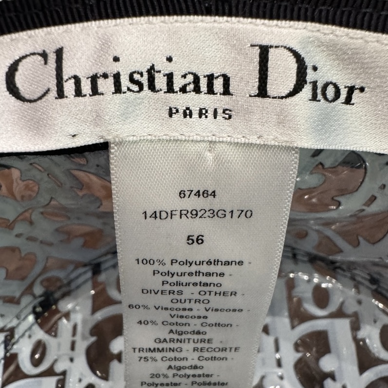 Christian Dior blue monogrammed rain hat.