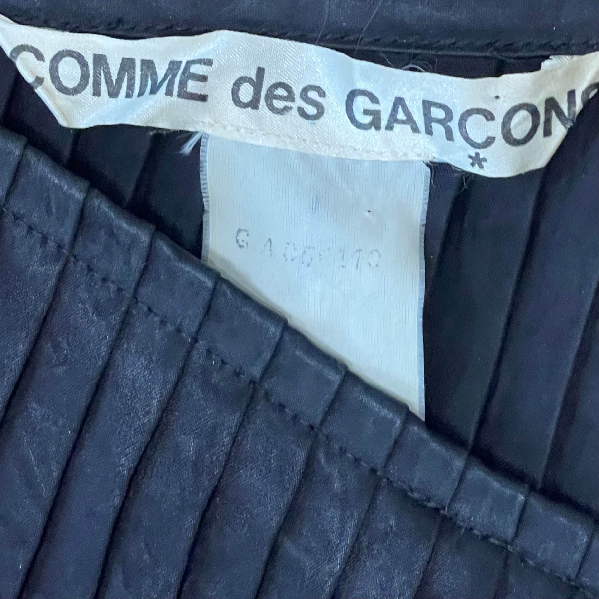 Comme Des Garçons sleeveless long assymetrical pleated dress. One side of the dress is open up to the waist.