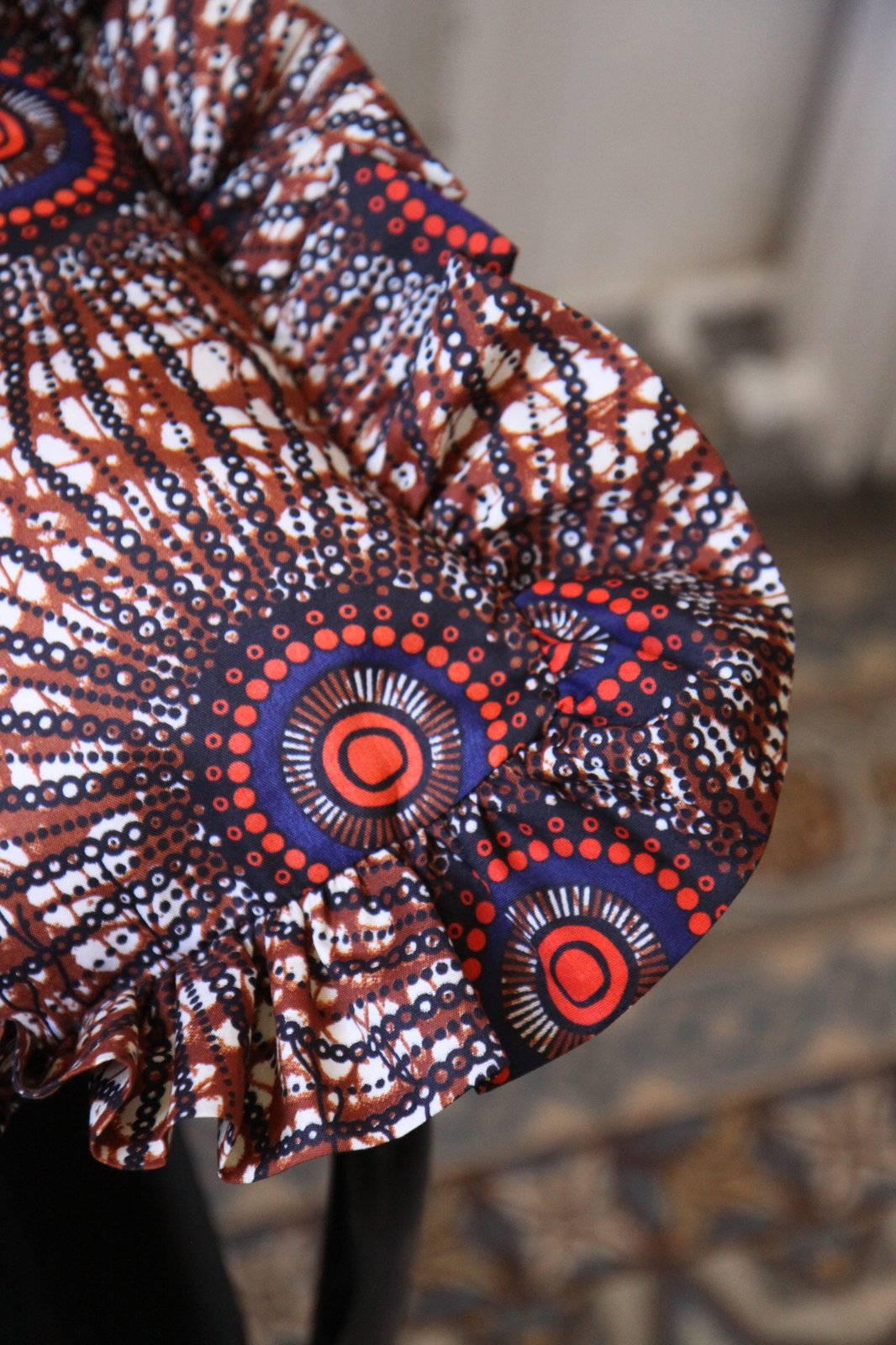 Coussin en en coton imprimé wax. Confort ferme : le coussin est tonique et ne s’affaisse pas. Déhoussable (zip à l’arrière) Il mesure 45cm x 45cm et 55cm x 55cm avec les fronces. Vendu avec une coussin de garnissage. Le tout est lavable. 45€
