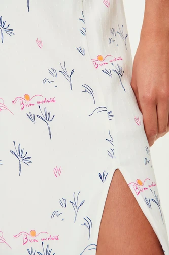 L’incontournable jupe longue demeure une valeur sûre pour l’été. Chic et minimaliste, message “Bisou ensoleillé” et motifs abstraits modernisent cette jupe en viscose fluide et légère.