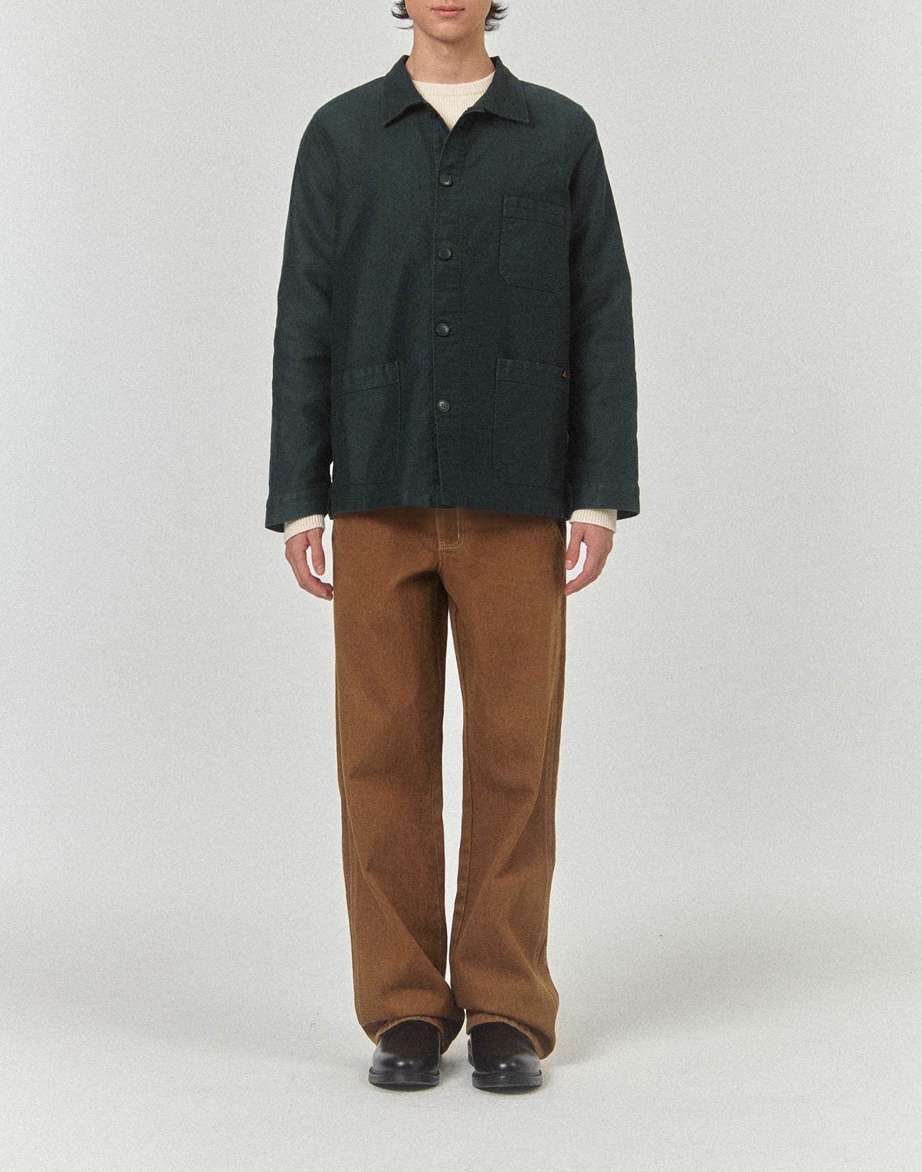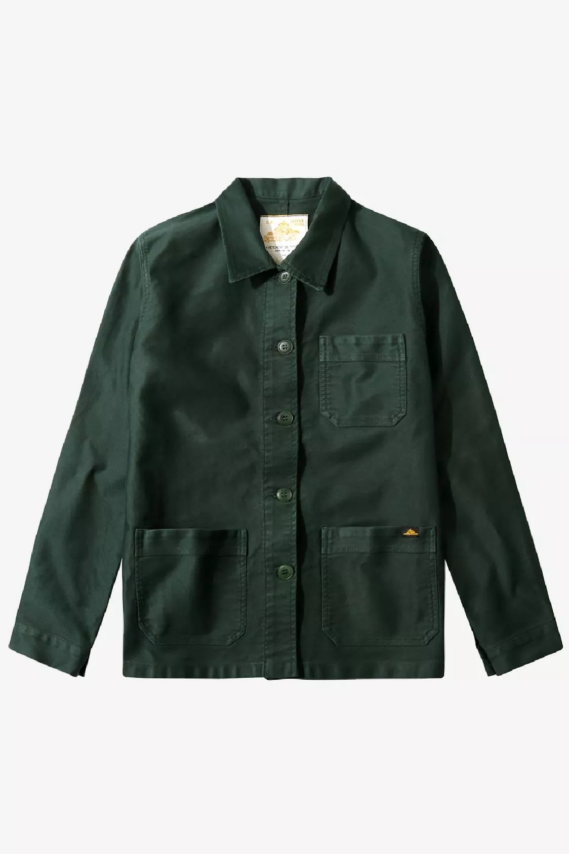 Le Mont Saint Michel’s iconic chore jacket since 1913 in dark green moleskine (heavy cotton fabric, super durable, ageing well). 3 patch pockets (1 one chesst), 1 inner pocket, 5 corozo buttons (vegan).