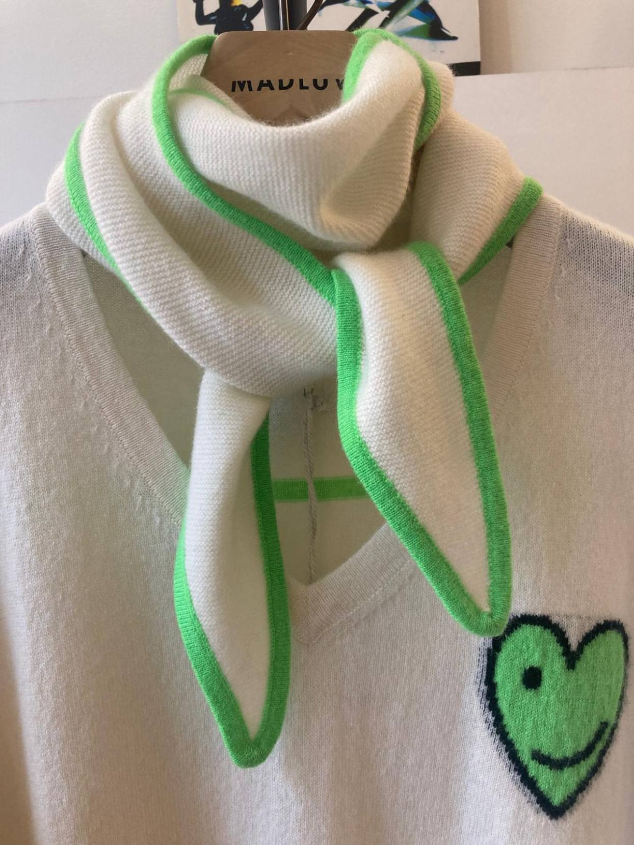 DYLAN : Foulard de cou,en cachemire – Tricoté en Point Mousse avec une patte de propreté pour une finition parfaite.Une EXCLUSIVITE MADLUV.100% cachemire- Taille Unique etUNISEXE- Blanc / VertModèles Bicolores :Camel/Rose, Kaki/Noir, Gris/Jaune, Vert d’eau/Orange, Blanc/Vert, Bleu/Rose, Bleu/Burgundy, Noir/Bleu, Bleu/Noir, Gris/Rose, Rose/Orange