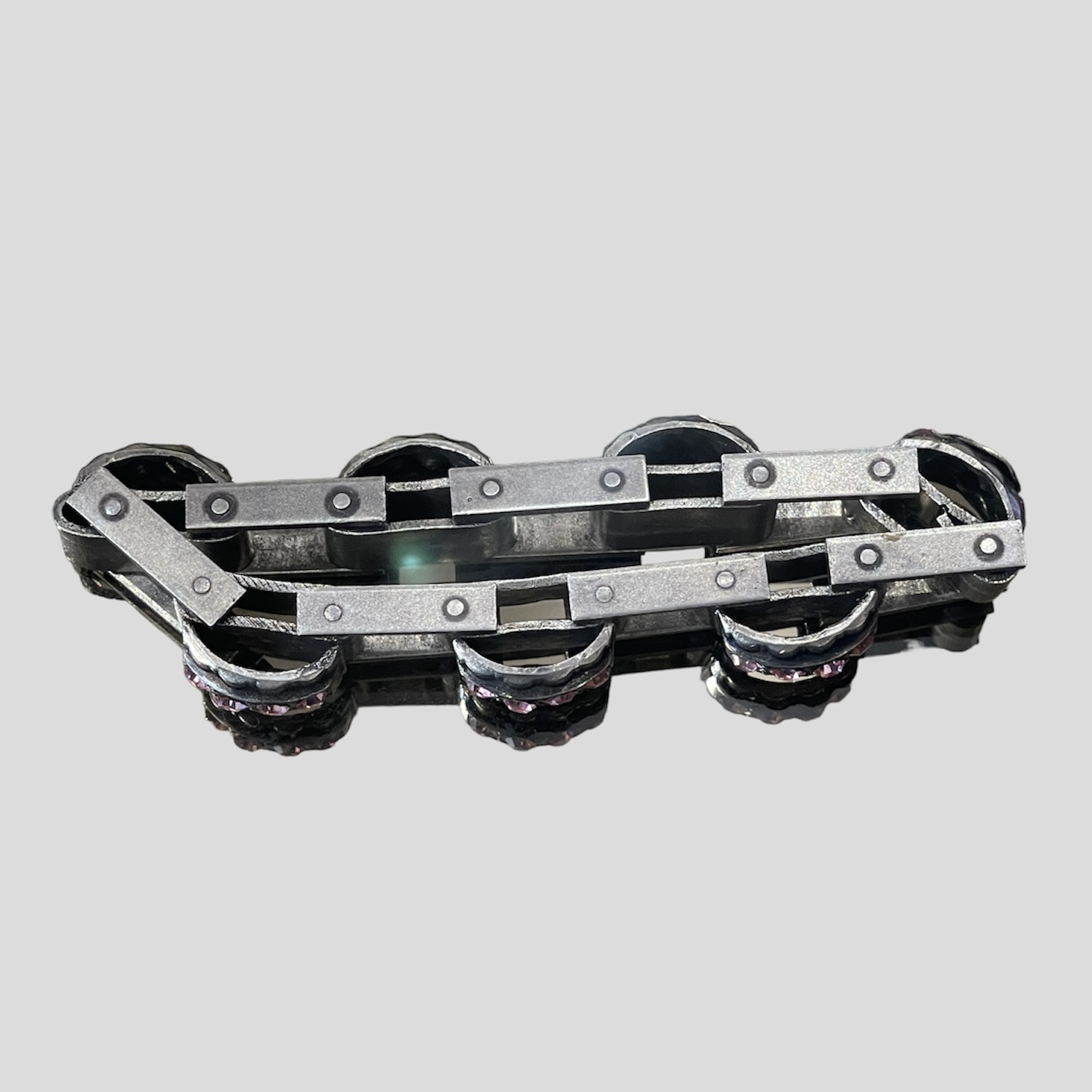 Jean Paul Gaultier Bracelet in silver metal with crochet link, chain and pink strass details.