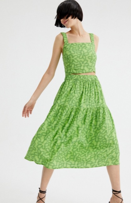 JUPE MIDI EN VISCOSE IMPRIMÉ FLORAL LENZING™ ECOVERO™