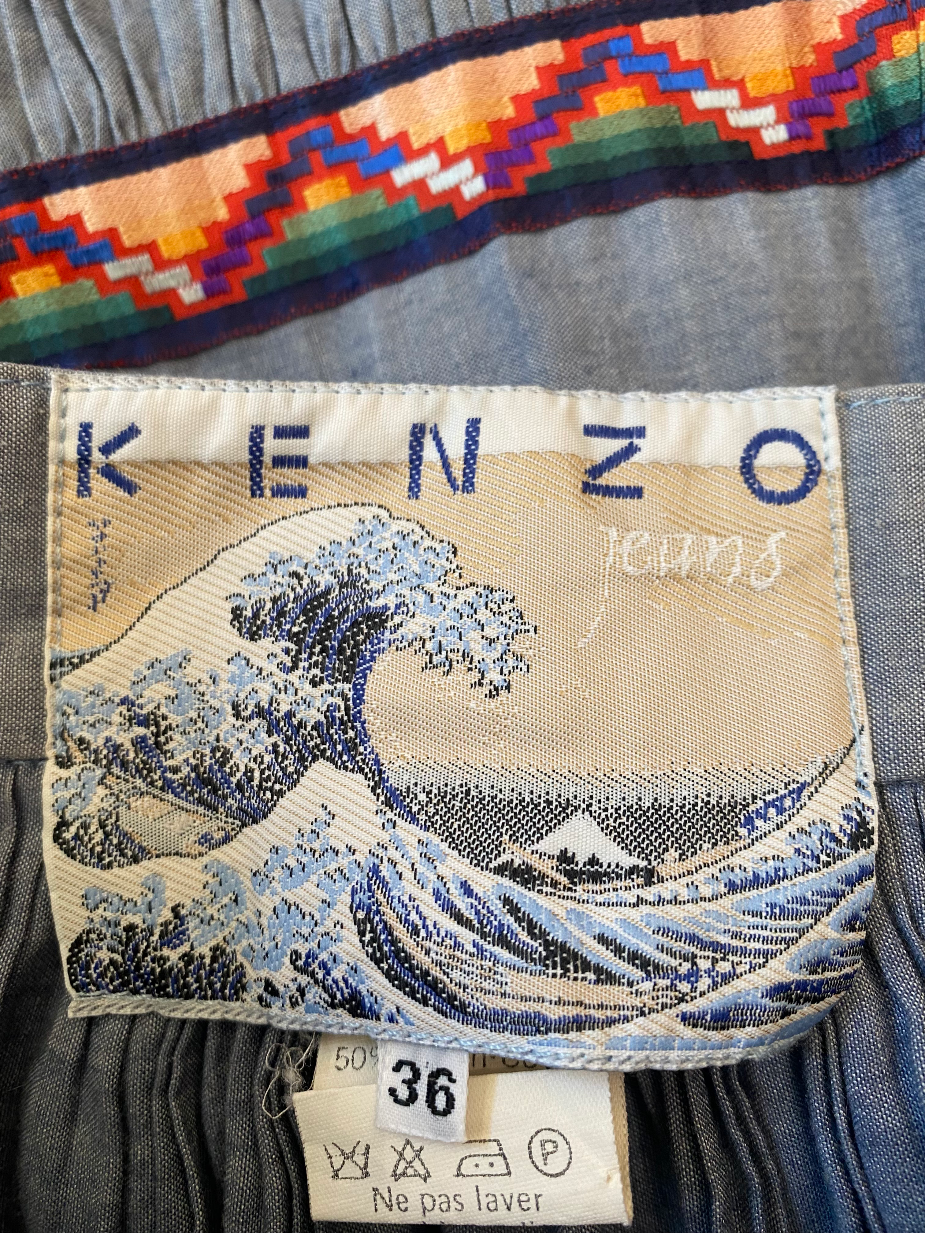 Kenzo Jean vintage blue skirt with aztec details from the 80s.
