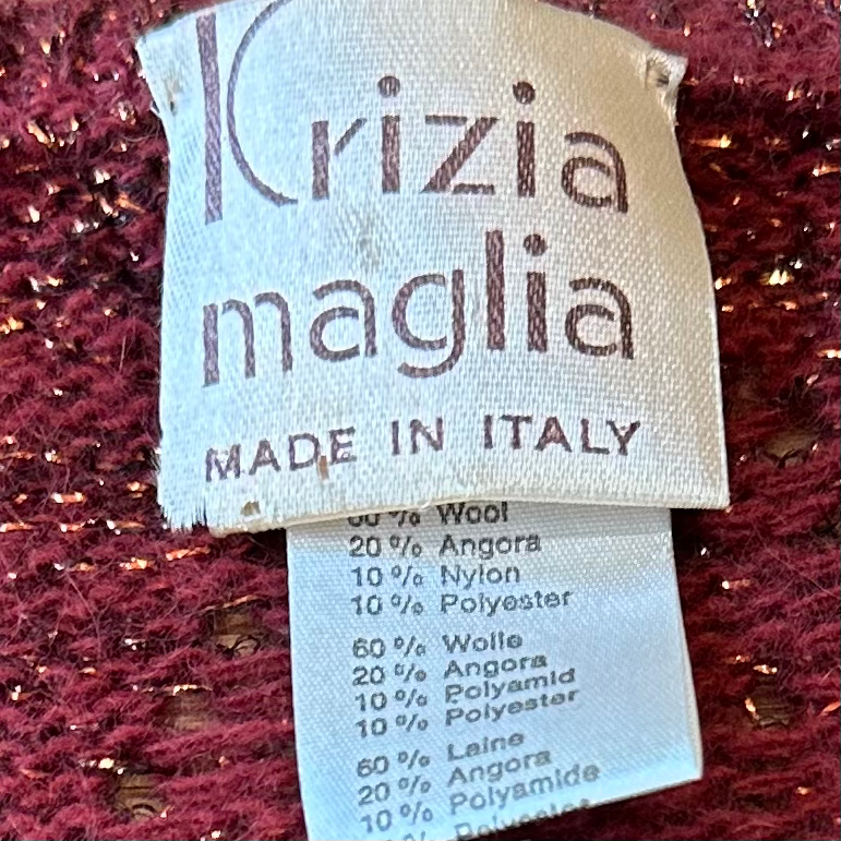 Krizia Maglia brown sequined wrap sleeveless cardigan in wool. Ties at the waist with a drawstring.