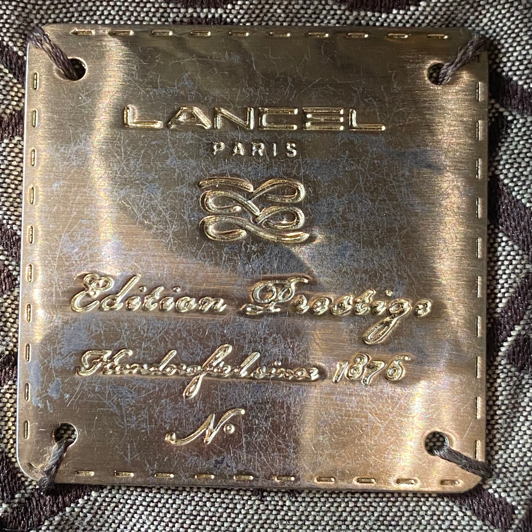 Lancel Seau Premier Flirt in leather. The bag closes with ties like a purse. The inside features the Lancel monogram and a zip pocket. It’s possible to add a shoulder strap on the bag. From 80’s.