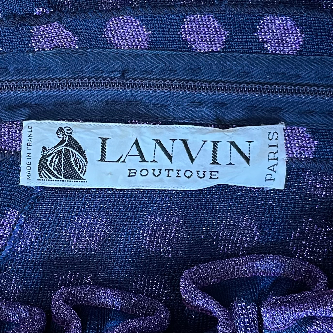 Lanvin multicolored long dress with geometric pattern and short sleeves. Ruffles at collar and sleeves. Back zip closure.