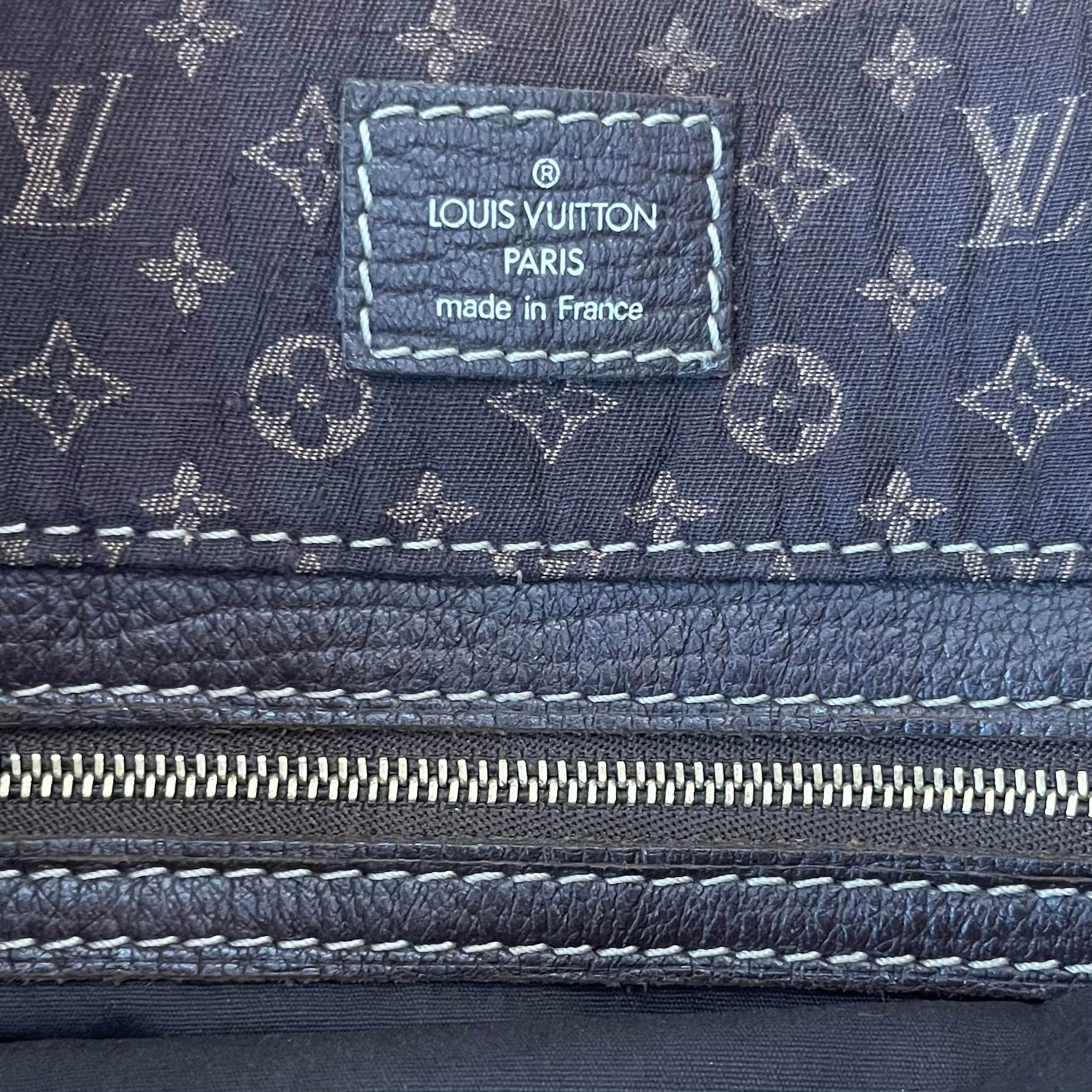 Louis Vuitton Sac plat Tanger in Monogram mini tote ba. IT hhas brown leather handles and bottom edges. The front has the Regatta Logo grom the Lv cup world series printed on it. Inside is in brown fabric lining with 1 zipper pocket.