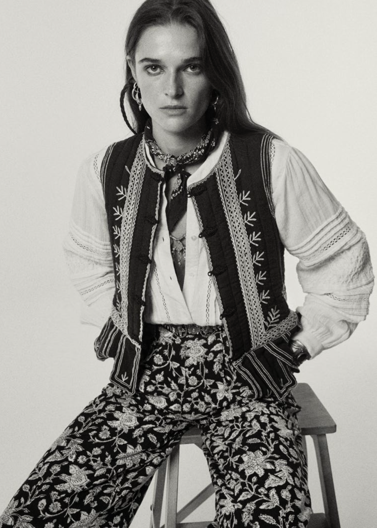 Ce gilet a le genre de détails qui parlent d’eux-mêmes. Une broderie riche sur un fond sombre le rend remarquable, sans chichis. Tout est une question de savoir-faire, vous offrant ce mélange parfait de cool old-school et de modernité.