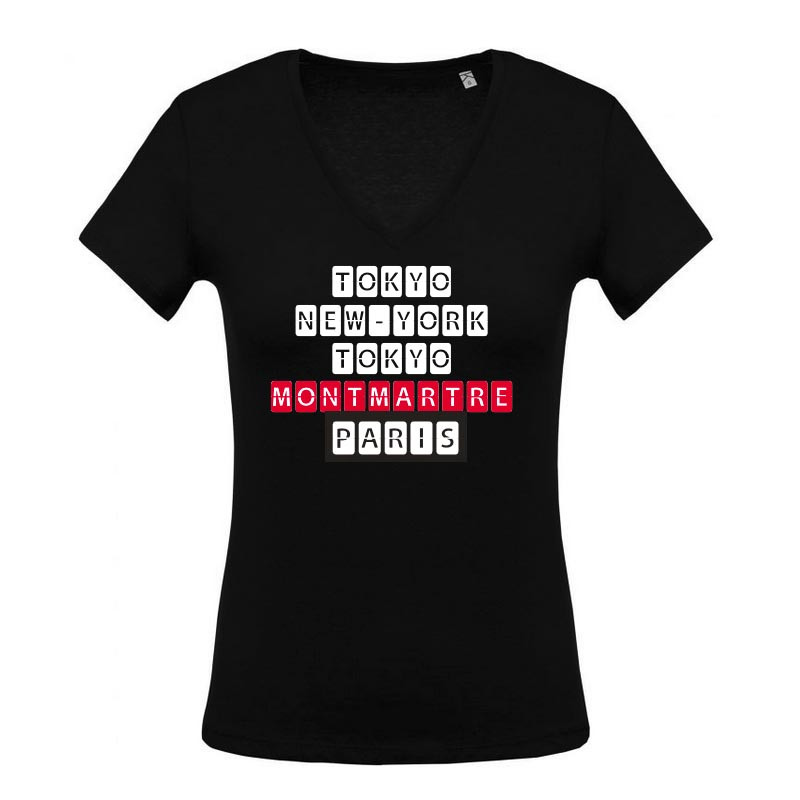 Montmartre N° 2 slim est un T-shirt en version col V et coton BIO. Retrouvez Tokyo, New-York, Sydney, Montmartre et Paris en couleurs Noir.