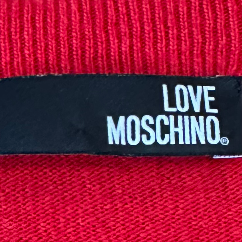 Moschino red embroidered sweater.