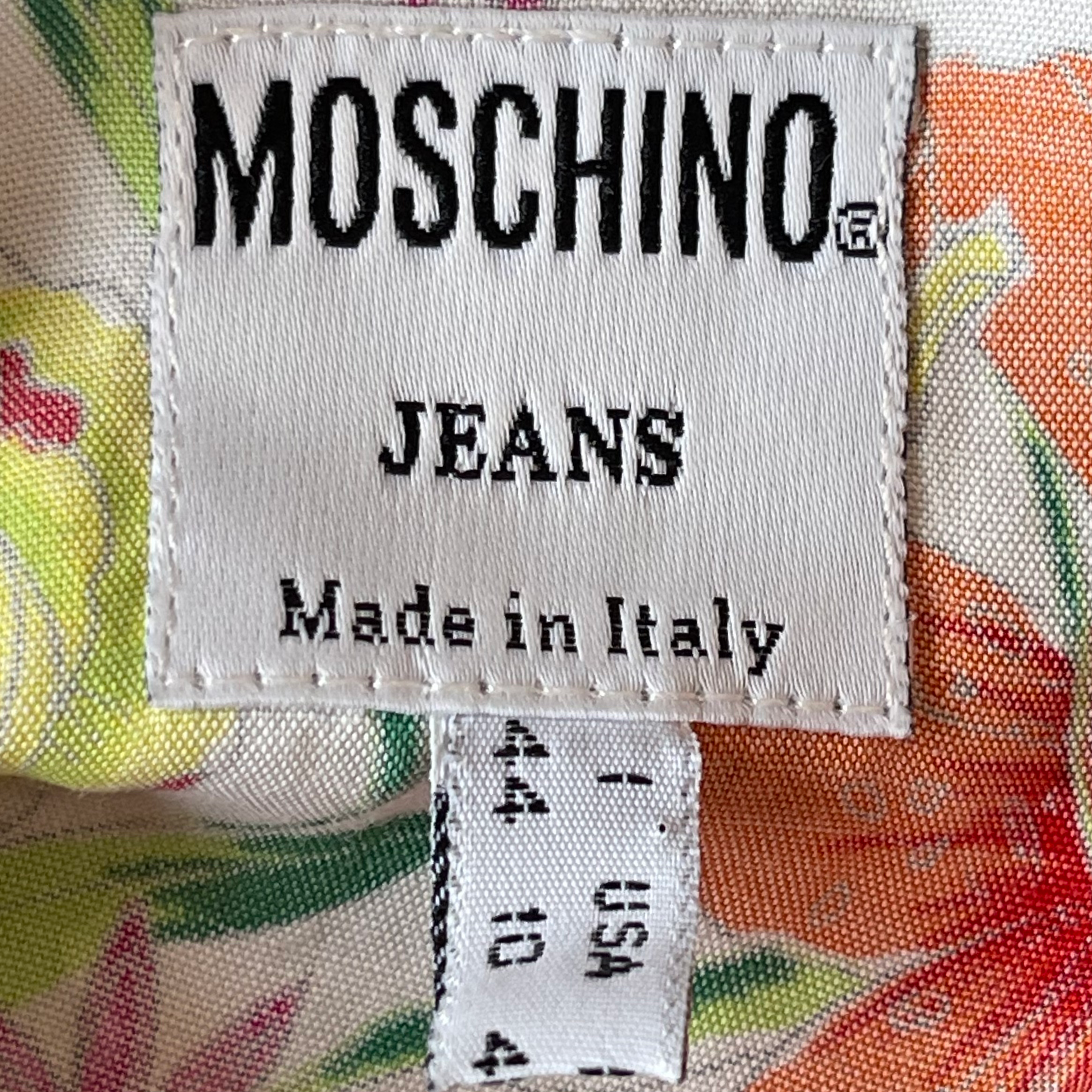 Moschino Floral Blouse with black stripes on the front and on the low back of the shirt. From the 80s.