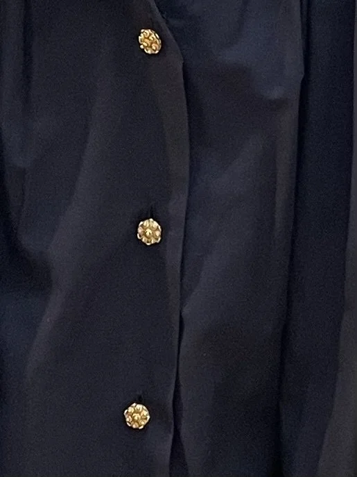 Blouse en coton coupe ample, encolure arrondie, manches longues et poignets resserrés, boutons Bijoux sur toute la hauteur devant.