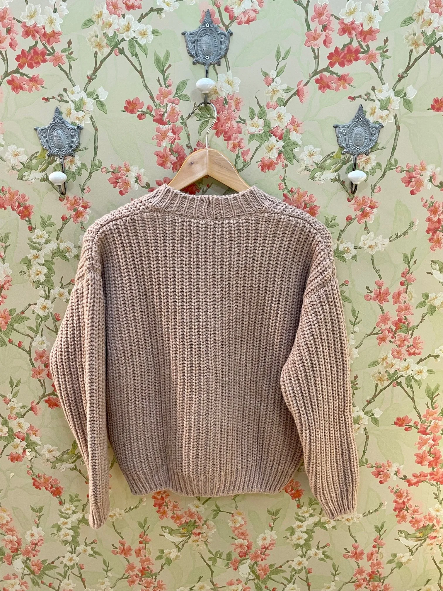 Gilet mode petite veste, coupe ample, manches longues, emmanchure large et poignets resserrés, encolure V et boutonnée. Tout doux et chaud.