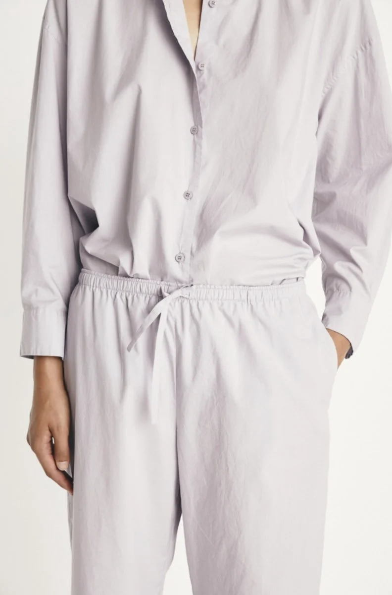 Grande chemise en coton, coupe ample, manches longues et poignets resserrés, emmanchure large, légèrement plus longue dans le dos.