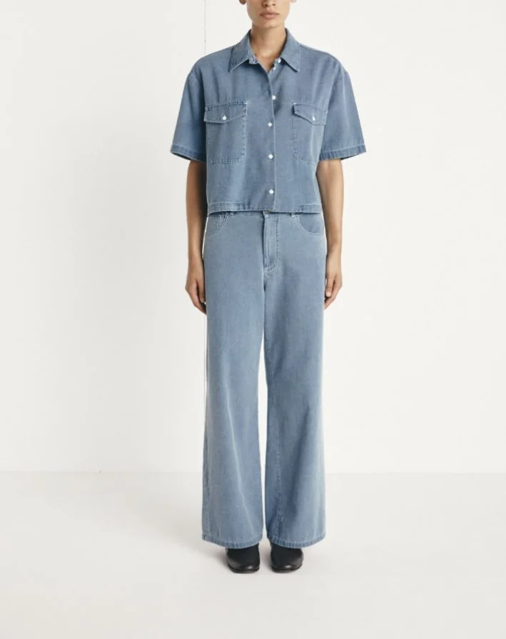 Jean en coton taille haute, coupe flare, poches devant et dos, fermeture classique par un zip et un bouton, coton extra souple et très doux.