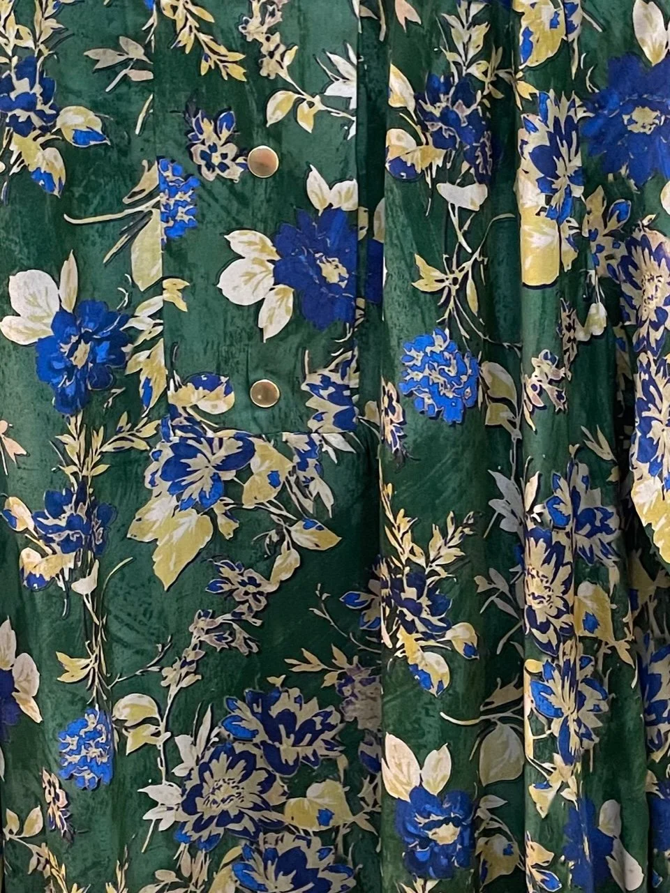 Robe longue fluide à motif floral, coupe ample, manches longues et poignets resserrés, encolure arrondie et boutonnée, peut se porter avec ou sans la ceinture. Le modèle taille grand.