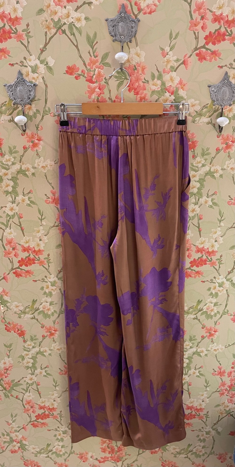 Pantalon fluide à motif floral, coupe ample, élastique à la taille, deux poches latérales, confortable et élégant.