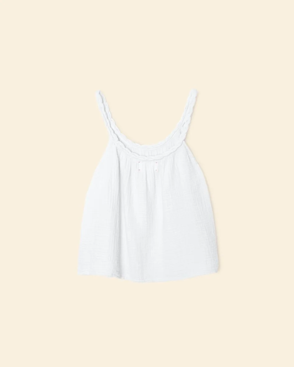 Top en coton coupe ample, encolure arrondie devant et dos, bretelles joliment torsadées, également disponible dans la couleur White.