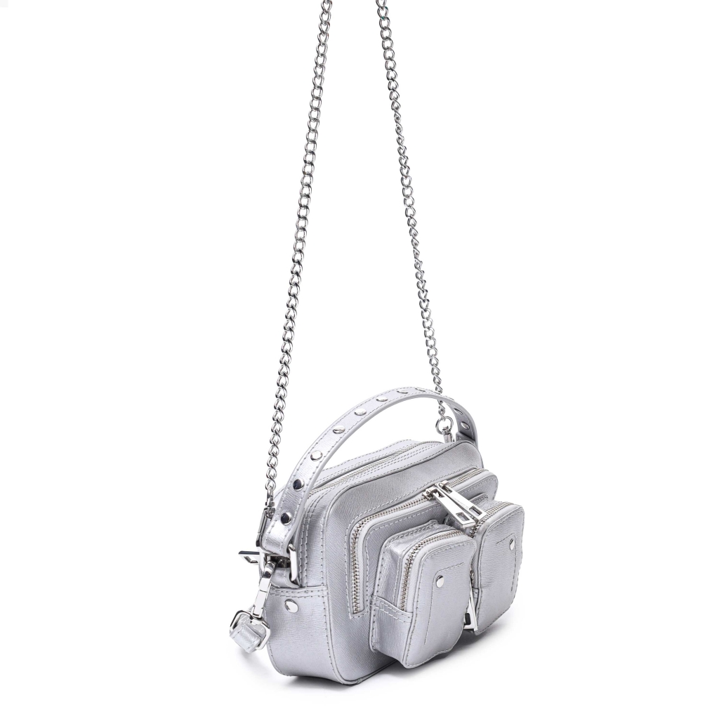 Sac Helena a un grand compartiment avec une poche intérieure, et deux petites poches situées sur le devant. Le sac a des détails argentés. Une chaîne et une sangle réglable pour le sac sont incluses. Ceux-ci sont amovibles.