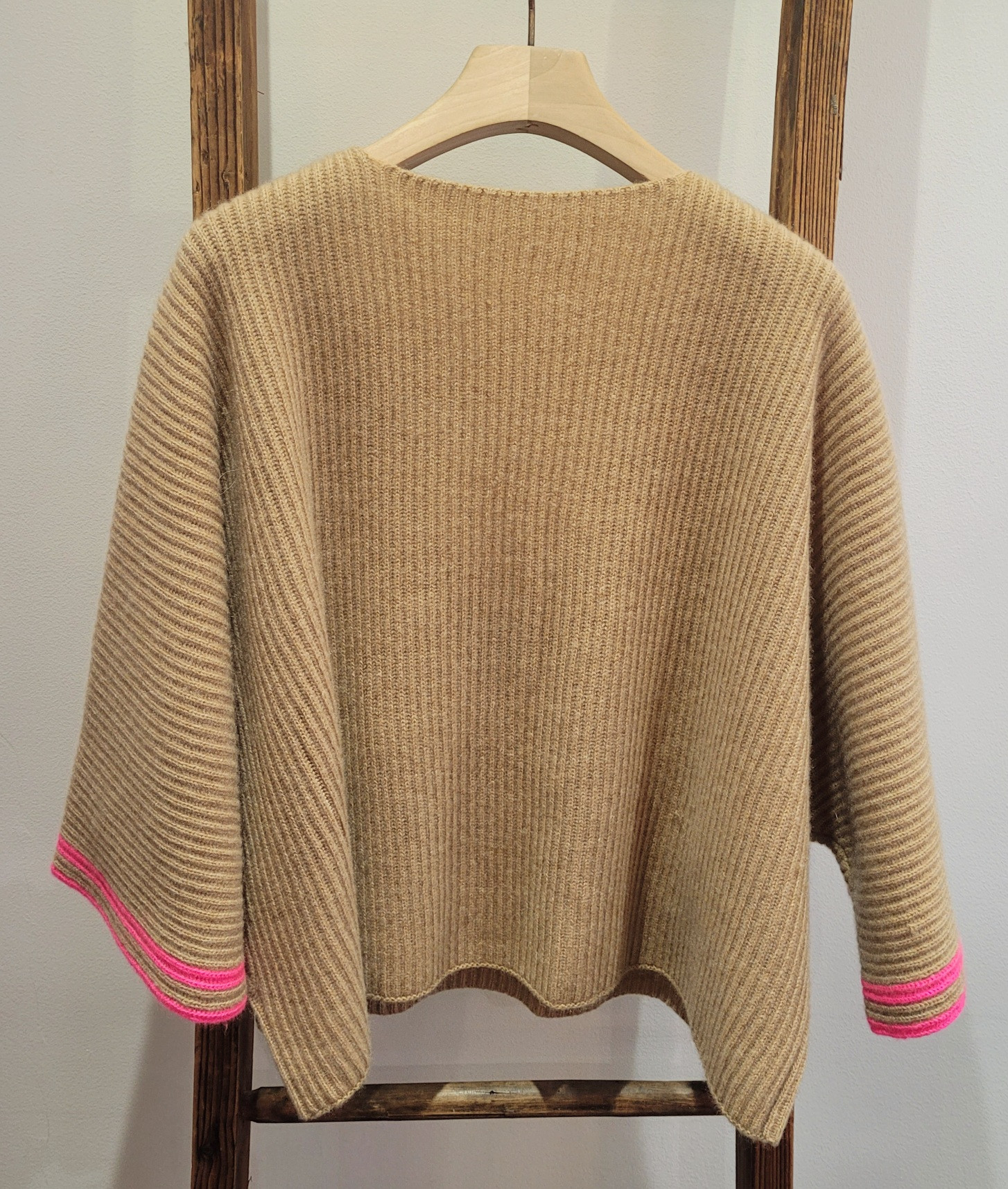 PAULA: Coupe poncho,4 filsen cachemire -Alliance bohème pop.100% cachemire- Taille Unique – Coloris Camel – Existe aussi en GrisLa livraison est offerte pour la France Métropolitaine !