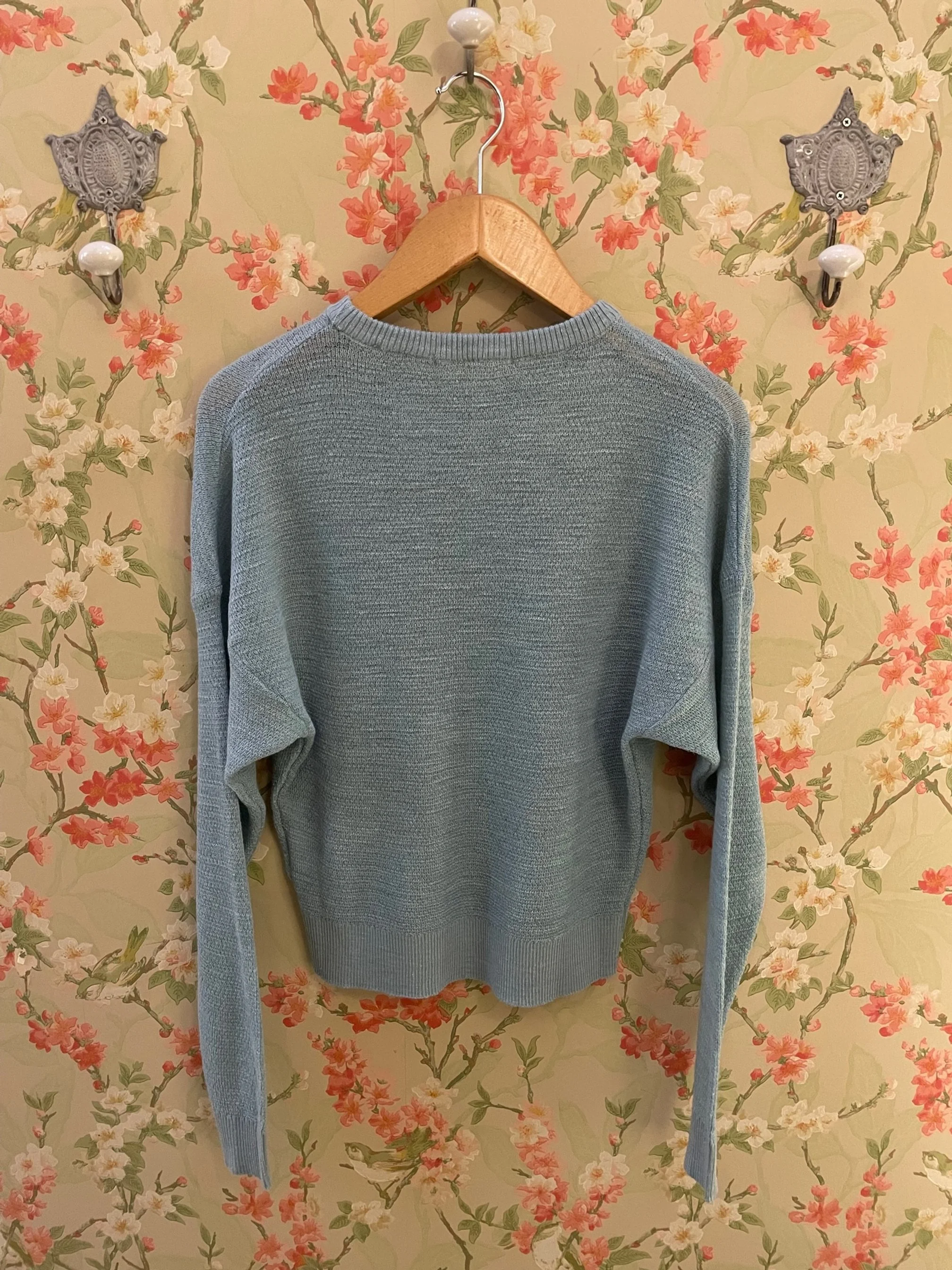 Pull en lin, coupe ample, manches longues et poignets resserrés, emmanchure large. Encolure arrondie. Également disponible dans la couleur Dove Gray.