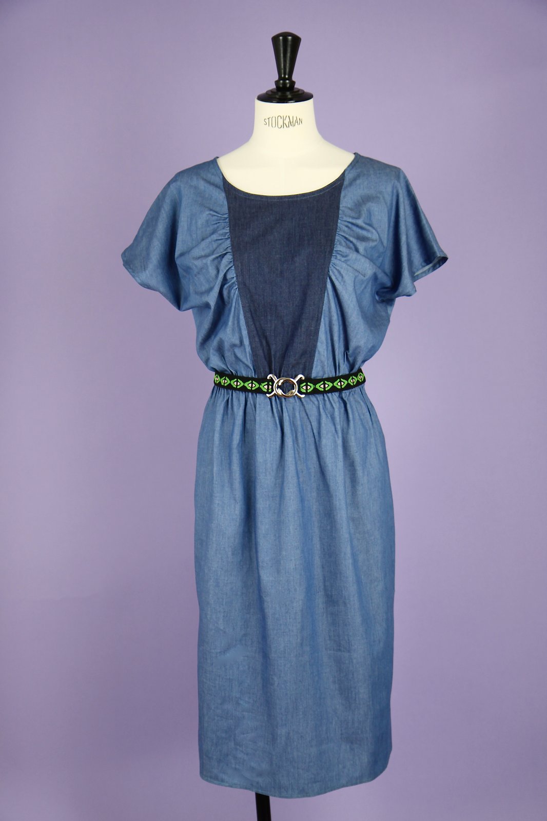Robe en coton denim fin et fluide aux manches papillon, ajustées par un élastique à la taille. Longueur genoux. Possibilité d’ajouter une ceinture (plusieurs motifs disponibles) 175€ -50 %= 87.50€