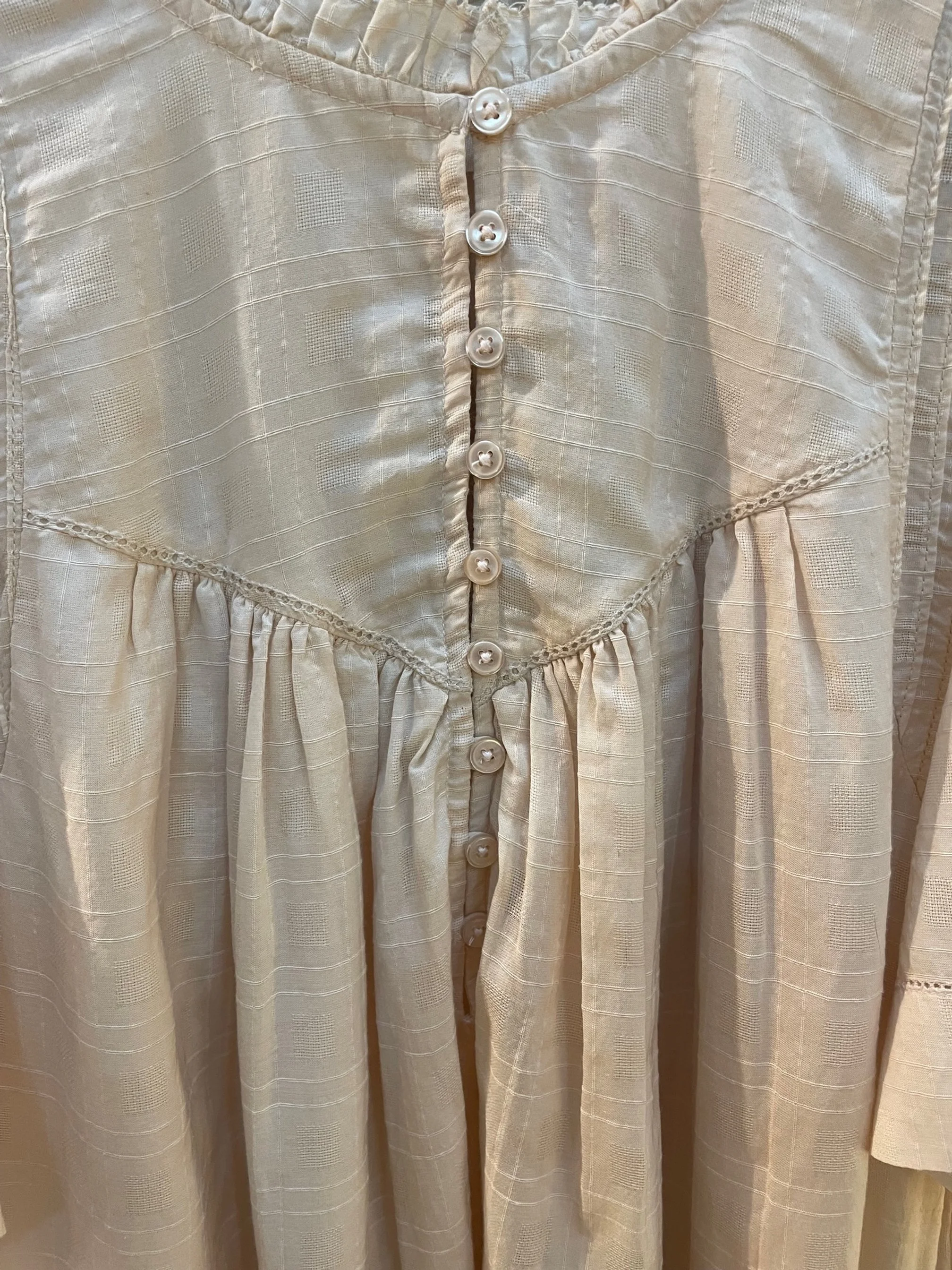 Robe courte en coton coupe ample, manches courtes évasées, encolure arrondie avec décolleté V, deux poches latérales. Se porte avec ou sans la ceinture. Également disponible dans la couleur Plum.
